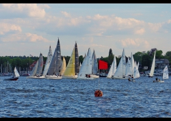 Zur zweiten Wettfahrt des gemeinsamen Jubiläumscup von PYC und BYC traten bei Leichtwindbedingungen 48 Schiffe an.