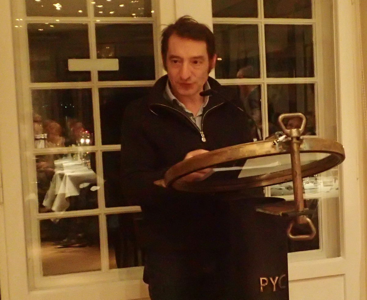 Mit diesen dürren Erkenntnissen ist der Rahmen für diesen Abend gesteckt. Unser Ehrengast kam ein wenig später, weil sein Zug aus Hamburg mit Verspätung eintraf. Das überbrückten wir höchst gelassen, bestellten unsere Getränke, und kaum war Boris Aljinovic unter uns - mit donnerndem Applaus empfangen - ging es auch schon los. Der traditionelle Schirmherr des Abends, unser Hafenkapitän Jörg Henschke, begrüßte den Ehrengast und Frau Dr. Melanie Aalburg, seine medizinische Beraterin für alle Lebenslagen - vor allem auf See - und natürlich die Gäste. Um der bei seinem Bericht evtl. auftretenden Seekrankheit vorzubeugen, gab es erst einmal etwas zu essen. Schon in der Einladung zu diesem Vortrag standen die wesentlichen Merkmale eines außerordentlichen Törns: Lanzarote, Madeira, Azoren, die Biskaya blieb für spätere Törns steuerbords liegen, dann zur Südküste Englands; hier erst endete die mangels Crew einhand geführte Reise. Zum Glück kam nun endlich eine “zweite” Hand an Bord, worauf während der folgenden Seemeilen auch nicht verzichtet werden durfte. Der Kanal ist nämlich bei Tag und vor allem bei Nacht voll wie die Berliner Stadtautobahn zur Rush Hour. Alles ging gut, und bis Cuxhaven bzw. Hamburg war es – bezogen auf die vorherigen Seemeilen – jetzt nur noch ein Katzensprung, um in heimatliche Gefilde vorzustoßen.