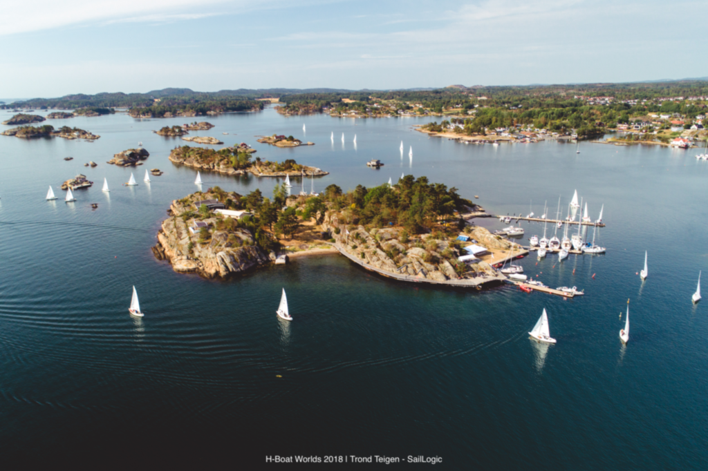 "Nach dem Sieg der GER-1010 beim Internationalen Bodenseepokal und Platz 5 bei der Internationalen Deutschen Meisterschaft zum Saisonauftakt im April/Mai 2018 konnten wir uns bei der Warnemünder Woche schon mit Platz 2 erfolgreich auf die zu erwarteten Verhältnisse mit entsprechendem Wind und Welle im Skagerrak einstellen. Nichtsdestotrotz konnten wir von einer TOP 10 Platzierung bei einer WM in Skandinavien mit den weltweit besten H-Boot-Seglern nur träumen. Alles begann mit einer zweitägigen Anreise über Dänemark/ Hirtshals Fähre Langesund. Nach Hitze in Deutschland genossen wir angenehme 22 °C, die atemberaubende Landschaft, die eigene Insel (Seilerholmen) des veranstaltenden Segelklubs "Sandefjord Seilforeining" sowie die außergewöhnliche Gastfreundschaft der Norweger.