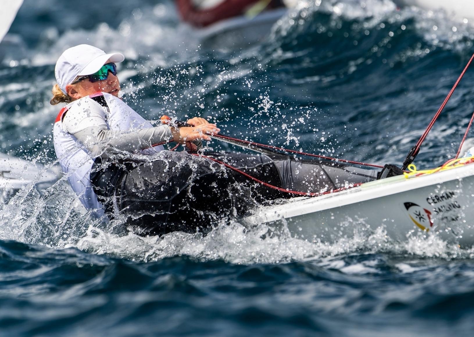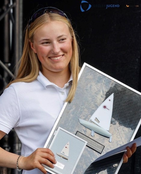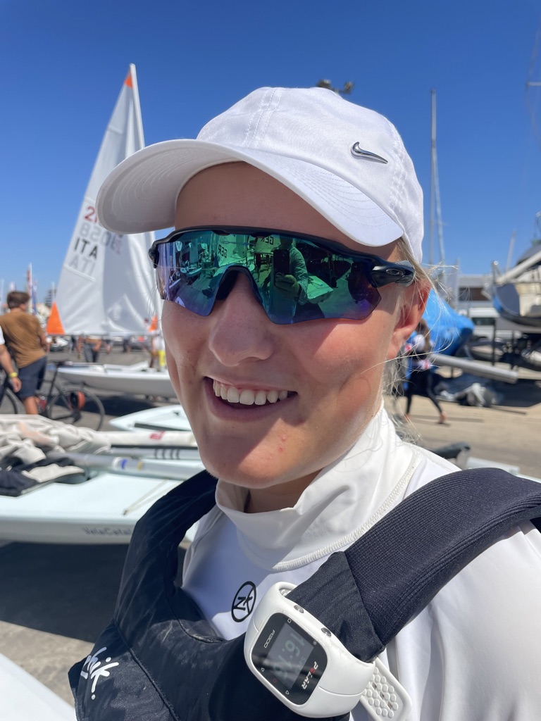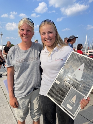 Gesa war im August sowohl in Kiel als auch in Vilamoura/ Portugal. Hier kommt ein kurzer Bericht von ihr: "Ein August voll mit Regatten liegt hinter mir. Nach dem Strander KÜZ ging es gleich weiter mit der Deutschen Jugendmeisterschaft, die in diesem Jahr im Rahmen der Feierlichkeiten von "50 Jahre Olympische Spiele in Kiel" stattfanden. Alle Jugendbootsklassen waren vertreten. Die Jugendmeisterschaft 2022 ist aber leider schon wieder Geschichte. Damit ist (altersbedingt) auch meine letzte Jugenddeutsche vorbei und ich kann kaum beschreiben, wie sich das anfühlt. Ich habe so viele tolle Menschen kennengelernt und es ist irgendwie schade, dass ich jetzt nur noch selten mit den Jungs segeln werde, mit denen ich jahrelang zusammen an den Start gegangen bin. Gerade im letzten Jahr hatte ich eine extrem starke Trainingsgruppe, die mich persönlich sowie seglerisch enorm weitergebracht hat, weshalb es eine noch größere Ehre für mich ist, in diesem Jahr und damit das zweite Mal in Folge das beste Mädchen U20 zu sein. Weiterhin ist mein Name für ein weiteres Jahr der einzige auf dem Wanderpokal, der im letzten Jahr von Pia Kuhlmann und der DLAS ins Leben gerufen worden ist. Zudem muss ich jetzt kein anderes Bild an die Stelle hängen, wo der Wanderpokal schon seine Spuren an der Wand hinterlassen hat. Im Ergebnis bin ich Gesamtsiebte geworden und fühlte mich eigentlich gut gerüstet für meinen Saisonhöhepunkt, der U21 WM in Vilamoura/ Portugal.