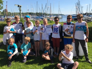 Dreifacherfolg bei der Berliner Meisterschaft der Opti B beim SC Gothia! Knackiger Wind am Samstag mit drei Wettfahrten verlangten den jungen Seglerinnen und Seglern am ersten Tag der Berliner Meisterschaft nicht nur seglerisches Können, sondern auch jede Menge Kondition ab. Wohl dem, der eine volle Fresstonne mitgebracht hatte. Viele der knapp 100 Teilnehmer traten bei den Bedingungen erst gar nicht an, einige kenterten so häufig, dass sie keine Kraft mehr hatten. Am Sonntag dann das Kontrastprogramm. Die Wettfahrtleitung hatte noch ein Rennen auf dem Plan. Nach einer Wettfart mit ganz wenig Wind war am Ende der Dreifacherfolg der PYC Segler perfekt. Annabelle Knoop ist Berliner Meisterin (und ließ sich auch nicht von einem ungeplanten Bad Ihres Vaters beim Ablegen irritieren), Samuel Tolckmitt und Leonie Böcker belegten die Plätze 2 und 3. Paul Kühling platzierte sich als achter noch unter den Top 10. Ein toller Erfolg der Truppe von Thomas Läufer und Lulu Schumann. Herzlichen Glückwunsch! Insgesamt ein beeindruckendes Abschneiden der gesamten Opti B Mannschaft des PYC. Alle angetretenen 16 Seglerinnen und Segler hielten bei den Bedingungen mit bemerkenswerten Ergebnissen durch.