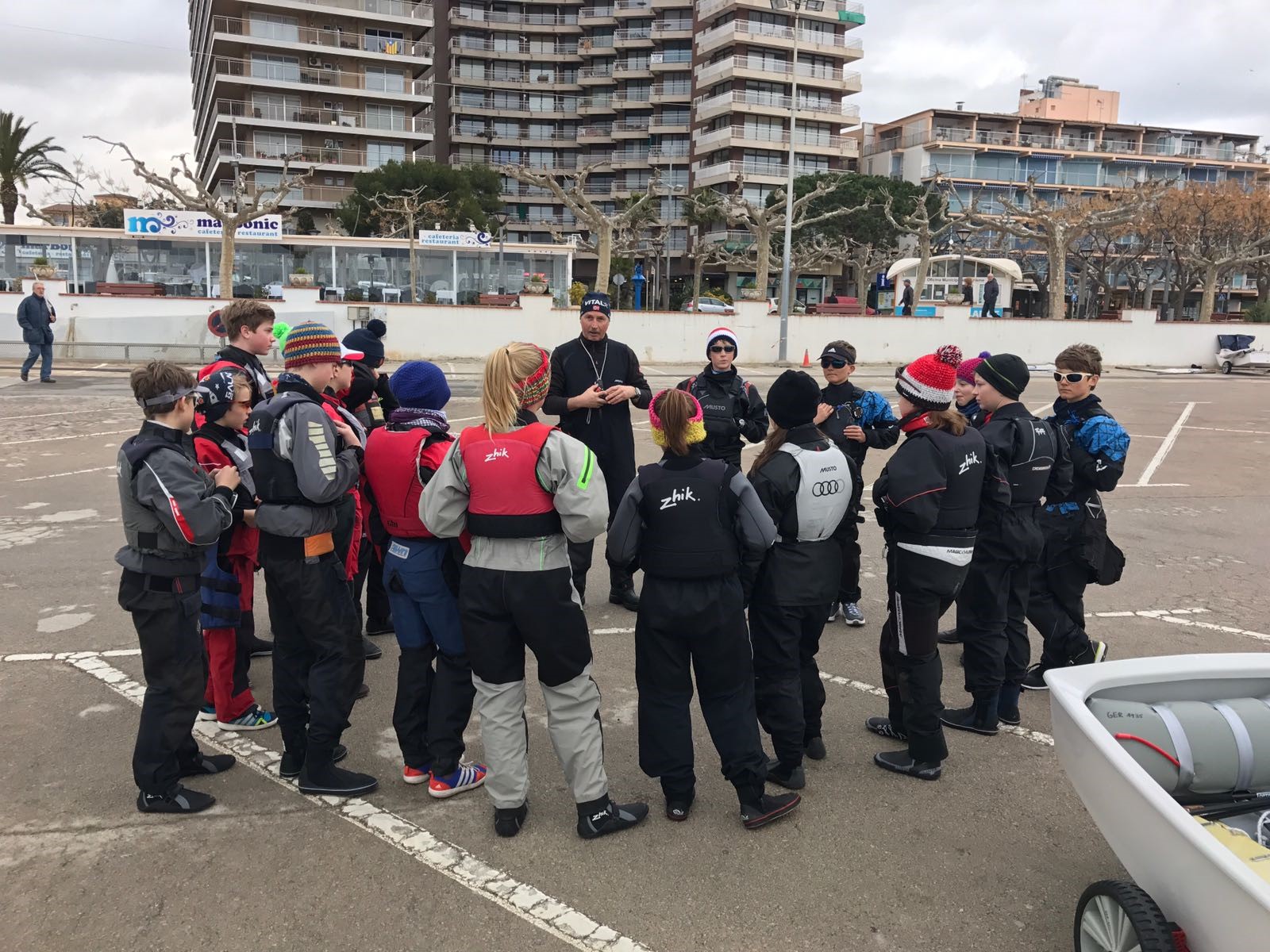 machten sich die drei Opti A Kadersegler Gesa, Merlin und Maxi sowie Leonie, Theo, Eddi und Moritz auf den Weg nach Palamos (bei Barcelona). 30 Knoten Wind, 13°C, ordentlich Welle und schulfrei. Was will man mehr? Thomas Läufer vertritt Kevin (gute Besserung!) und trainiert gemeinsam mit Martin Schlaaf die PYC Segler und den Berliner Kader. Ganz herzlichen Dank an Maria Oncken, die die Landbetreuung übernommen hat und folgendes berichtet: "Die Opti Kinder sind wieder zurück aus Palamos, gesund, gebräunt und gut gelaunt. Schon allein für die ersten 2 Tage hat sich die Reise gelohnt: wo sonst kann man bei bis zu gefühlt 7 m hohen Wellen trainieren? Auch die weiteren Tage war das Training sehr abwechslungsreich, bei insgesamt 8 Segeltagen gab es nur einen Tag Flaute, dieser war allerdings der 2. Regattatag. Die Kadergruppe unter Martin und die PYC Optis mit Thomas fanden sich sehr gut zusammen, die Stimmung im ganzen Team war sehr angenehm, die Kinder haben sich auf Anhieb gut verstanden. Bei der Palamos Opti Trophy am Ende des Trainingslagers gingen dieses Jahr 550 (!) Kinder aus über 25 Nationen an den Start; gefahren wurde in 5 Fleets. Aufgrund des Flautentages gab es am Ende keine Einteilung in Gold, Silber und Bronze. Insgesamt gab es statt 9 geplanter dann nur 6 Wettfahrten. Mit den Ergebnissen unserer Kinder in diesem großen internationalen Feld nach der langen Winterpause sind alle zufrieden. Herzlichen Dank an unseren Trainer Thomas Läufer, der uns zusammen mit Martin Schlaaf diese wunderschöne Trainingszeit ermöglicht hat."