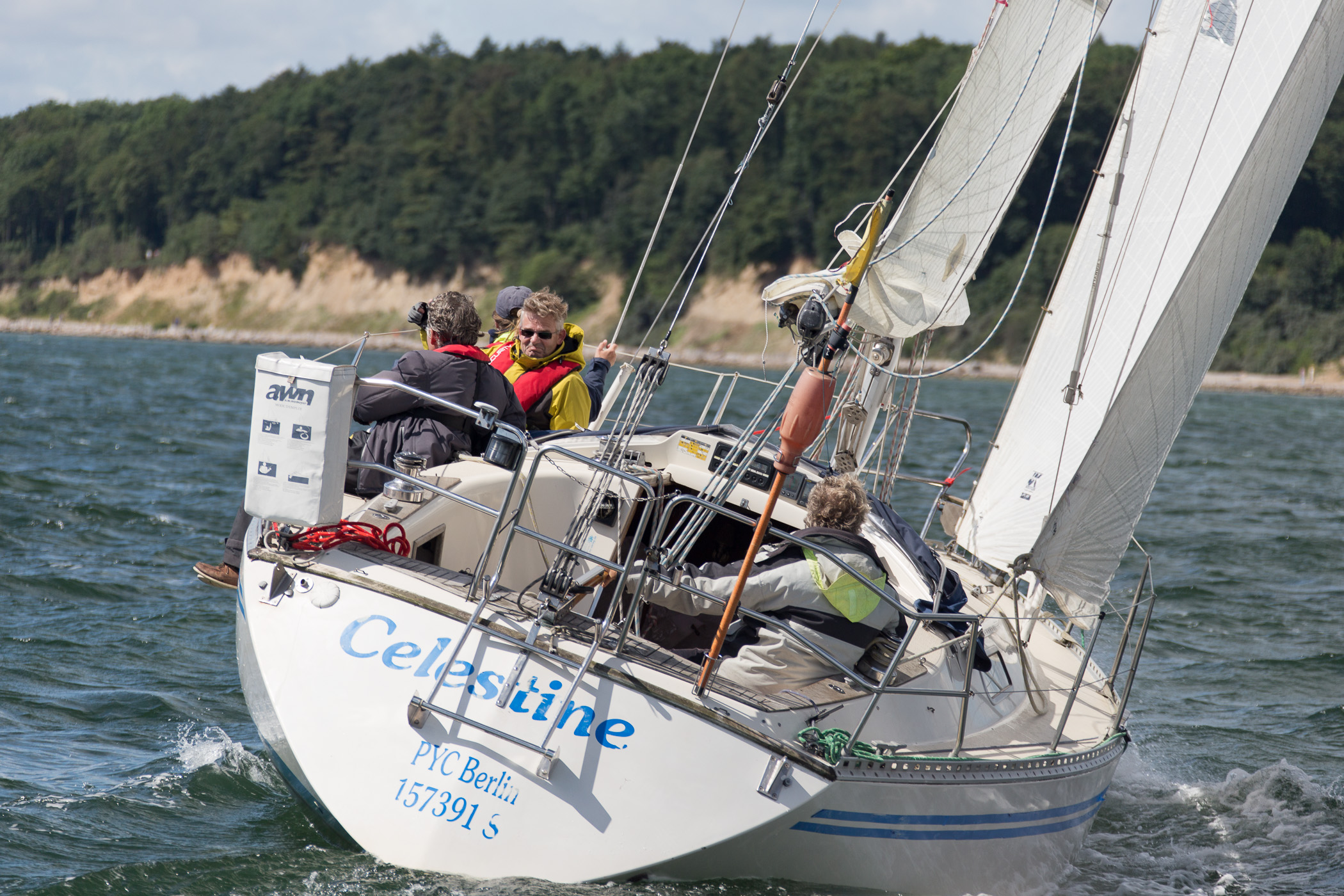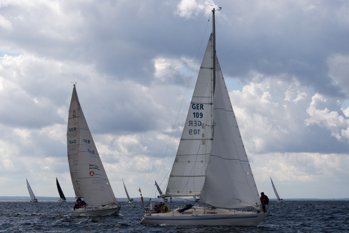 Bei der Steuermannsbesprechung am Sonnabend wurde der Kurs bekanntgegeben. Für alle Gruppen ging es zur Tonne Neustadt 1 und dann für die Gruppen II und III/IV zu einer „Messtonne“. Von dort sollte es zurück nach Grömitz gehen – Zieleinlauf voraussichtlich unter Spinnacker. Für die Gruppen I und V war der Kurs länger. Nach der Kreuz zur Tonne Neustadt 1 zogen wir unter Spi langsam an der SY Test vorbei. Doch wo war die Messtonne? Das Feld wurde vom schnellen Lutz (SY Tsunami) angeführt. An der angegebenen Position war aber keine Tonne. Die Mädels der SY Ohlala versuchten die Wettfahrtleitung über Funk zu erreichen, was aber nicht klappte. Kurze Zeit später funkten sie, dass sie jetzt nach Grömitz segeln wollten. Das ganze Feld machte das nach und die Yachten die noch zurücklagen, waren plötzlich gut in Luv dabei. Es war klar, diese Wettfahrt konnte für die Gruppen II und III/IV nicht gewertet werden. Das sah auch die Wettfahrtleitung ein. Die Ursache war ein Zahlendreher in der Positionsangabe. Der Wettfahrtleiter Jens Hahlbrock klärte das am Sonntagmorgen humorvoll auf und niemand konnte ihm böse sein.