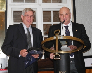 Anschließend berichtete Kapitän Brandt, was sich innerhalb des letzten Jahres hinsichtlich der Instandsetzung des Segelschulschiffes ereignet hat. Die Gorch Fock befinde sich jetzt im fünften Jahr in der Werft, so der Kommandant. „Wir stehen damit im engen Wettkampf mit dem BER.“ Kapitän Brandt hat seinen Humor behalten, auch wenn die vergangenen zwölf Monate „kein schönes Jahr“ gewesen seien. Unterstützung habe es stets durch die Bevölkerung, den Potsdamer Yacht Club und den Kieler Landtag gegeben, kaum jedoch von jenen, die das Segelschulschiff früher gerne zu Repräsentationszwecken genutzt hätten. Am 24.6.19 habe man dann aufatmen können, als die Ministerin beschloss, dass die Gorch Fock zu Ende gebaut wird. Die Verträge werden nun neu geregelt. Eine Obergrenze von 128 Mio. Euro, das sei zu schaffen, so der Kommandant. Die Ausbildung der Kadetten finde einstweilen auf dem Großsegler Alexander von Humboldt II statt. Von 265 Kadetten seien inzwischen 200 auf dem Segelschulschiff gesegelt. Der ehemalige Kommandant der Gorch Fock, Kapitän Immo von Schnurrbein (Jg. '38!), sei dafür eigens noch einmal aktiv geworden. Außerdem freue man sich über die zusätzliche Gelegenheit, bei Regatten des PYC immer wieder Besatzungsmitglieder auf den Schiffen von Clubmitgliedern unterbringen und so tatsächlich einen Einblick in die Praxis geben zu können. - Dennoch werde es Zeit, dass die Gorch Fock aus der Werft komme, so Kapitän Brand, der das Schiff in absehbarer Zeit in andere Hände übergeben und seine Karriere auf dem größten Segelschulschiff beenden will.