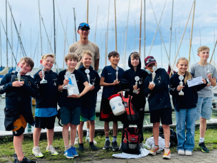 Der Sonntag begann mit Flaute und wir mussten auf den Wind warten. So fand der erste Start erst gegen Mittag statt. Nach der ersten Wettfahrt des Tages wurde die Regatta direkt abgebrochen und es gab keine fünfte Wettfahrt, die eigentlich geplant war. Es wurden noch einige Proteste verhandelt und dann fand am späten Nachmittag, nachdem wir alle Hot Dogs und Kuchen gegessen hatten, die Siegerehrung statt. Anton Hoff vom VSAW belegte den ersten Platz, Nele Schlaaff vom Yachtclub Berlin-Grünau den zweiten. Ich habe mich sehr über meinen dritten Platz gefreut, obwohl ich nach dem ersten Tag noch auf Platz 1 lag. Die Flaute hätte also gerne länger dauern können... Alle Teilnehmerinnen und Teilnehmer bekamen noch einen Pokal und einen Pullover geschenkt.