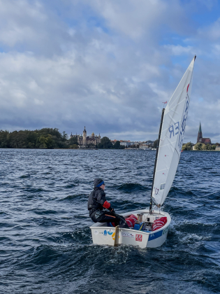 Kurz bevor sich die Saison dem Ende neigt, findet auf dem Schweriner See alljährlich noch ein Highlight statt - der Herbstpokal, bei dem neben Optis (alle Altersklassen von C bis A) auch Ilcas und Europes an den Start gehen. Hinzu kam, dass Schwerin selbst noch in festlicher Stimmung durch das Bürgerfest unter dem Motto „Vereint Segel setzen“ zum Tag der Deutschen Einheit am 3. Oktober stand. So empfing uns der Schweriner Yacht Club bereits am Freitag Abend herzlich, Optis und Mobo waren sogar im Dunkeln binnen kürzester Zeit abgeladen und gestärkt durch eine Pizza konnte dann auch das Wochenende starten.